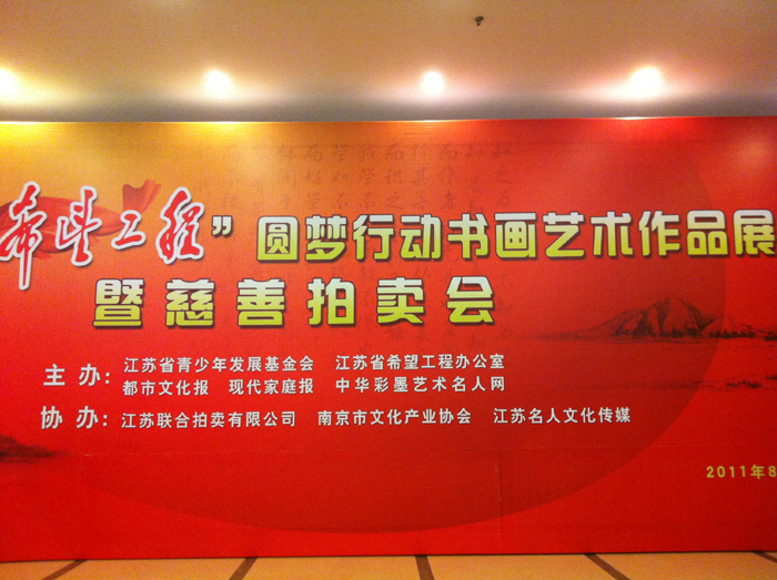 2011年8月7日上午,江苏省“希望工程圆梦行动”书画艺术作品慈善拍卖会在南京文化艺术中心开槌。我集团董事长作为省青商会副会长、省青联副主席对于此次的活动给予了高度关注,并及时要求集团安排代表参加此次拍卖会,在7月份刚为贫困大学生资助过后,再度捐献我们的爱心。团江苏省委副书记张国梁出席拍卖会并致辞。