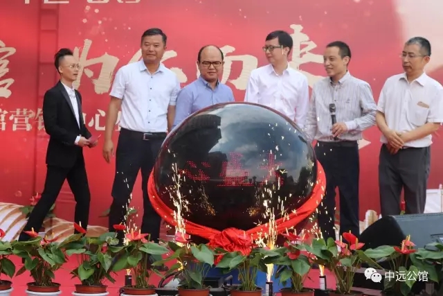 秦总的精彩致辞之后,便迎来今天最具激动人心的时刻。江苏富达企业投资集团董事、盐城中远投资发展有限公司秦总、江苏富达企业投资集团董事、盐城银河印刷有限公司洪总,碧桂园沪苏区域盐城公司营销总经理石总,盐城同步房地产营销策划有限公司卫总,盐都区实验学校王校长一同走上舞台,触摸营销中心启动球,标志着中远•公馆营销中心正式公开。与此同时,8台皇家礼炮齐鸣,寓意中远•公馆项目大卖。