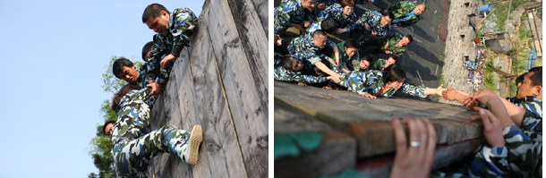 与以往的培训班不同,此次培训采取了拓展训练的方式,对于绝大部分富达人来说,这短短的一天,却是一次全新而难忘的体验。烈日炎炎,高亢的口号声响彻整个十月军校的训练场。攀岩比赛,富达人展现了积极拼搏、勇于挑战自我的进取精神;信任背摔,富达人展现了团队间人与人的相互信任;穿越电网,富达人展示了无比和谐的团队默契和协作;七巧板游戏,富达人表现出团队间良好的沟通与合作;逃生墙,在不借助任何工具的情况下,48名队员只用了11分37秒就翻越了4.2米的高墙!多么强大的团队凝聚力和战斗力!
