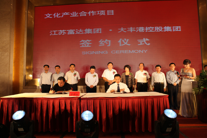 紧接着进入了本次活动最重要的环节:分别与大丰港控股集团、南京大学出版社和江苏博汇集团的文化产业合作的签约仪式,主持人在详细介绍了项目后,隆重邀请市里的重要领导上台共同见证这一重要时刻。这预示着集团的文化事业将呈献崭新的面貌,南京大学出版社领导作为签约嘉宾表了态,共同祝愿后面的合作更上一层楼,盐城市周副市长发表讲话表示祝贺,表示盐城及当地政府会给予积极支持和服务,并表达了对富达未来发展的信心与祝福!