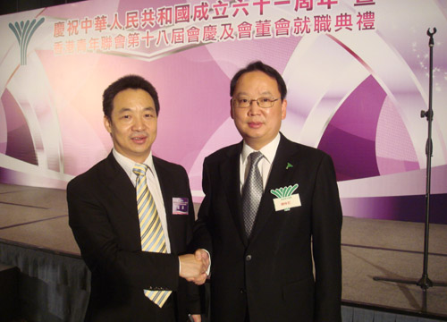 香港青年联会于今年6月举行了会员大会,选举并产生了第十八届会董会,金鹰控股主席陈仲尼获选连任新一届香港青联主席,并当选为全国青联副主席。8月31日举行了就职典礼的同时也借此盛会庆祝中华人民共和国成立61周年。