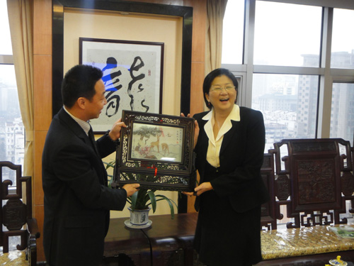 3月1日,东森国际公司以雷倩女士为团长的一行5人来宁与我集团洽谈动漫公司合作事宜。参访团成员有东森国际公司首席顾问雷倩女士,森传媒公司董事长张树森,东森国际公司副总经理投资处长谢长仲,森传媒公司副总经理陈进喜,和东森国际公司总管理室副理许建德。富达集团董事长张涛、总裁赵新华等热情接待了台湾贵宾。在宁三天行程虽然安排得很紧凑,但我们的合作洽谈取得了重要性的进展。