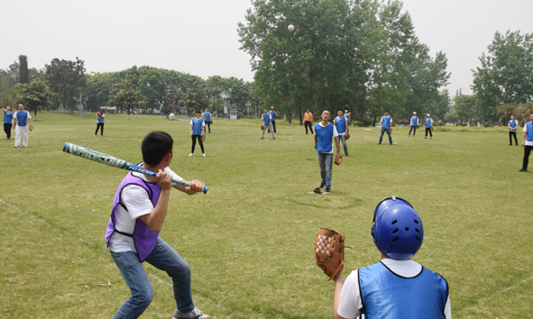 九点整,两路人马胜利会合,活动正式开始。集团执行总裁童艳女士作了动员讲话,此次培训旨在让大家充分意识到在我们的工作中要自信且信任他人,勇于承担责任且乐于助人,每个人在自己的岗位上,协同一致,为共同的目的而努力奋斗。随后,十位新员工作了简短的自我介绍,让大家初步认识自己,以便迅速融入富达企业集团大家庭。一系列热身运动结束后,大家都放开了拘束,全身心投入到培训中。活动分成了两个棒球队,“二十四人队”和“蓝色火焰队”,教练分别对两队进行了运动规则讲解和基础训练。